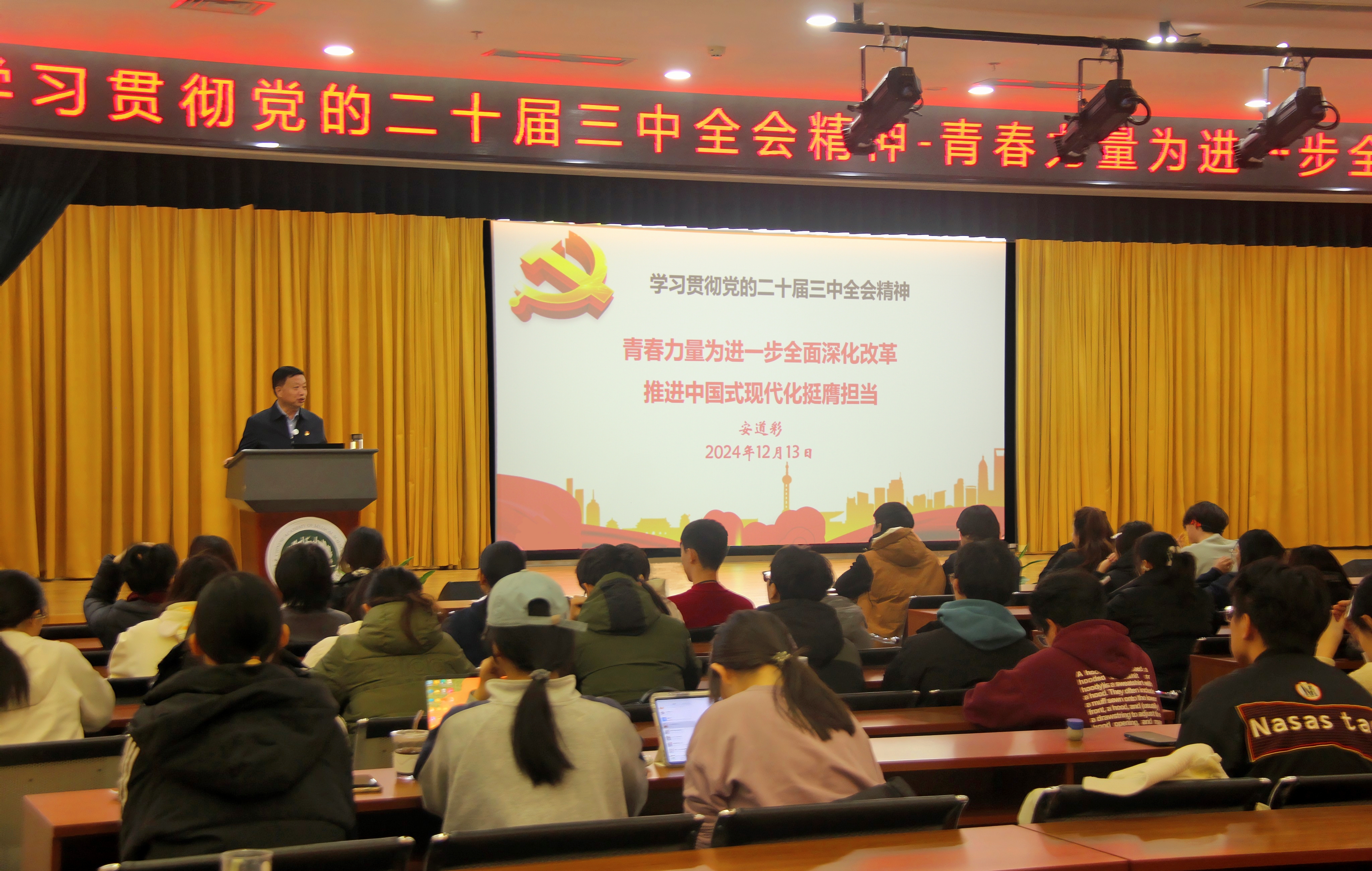 青春心向党,奋进新征程。12月13日中午,BB贝博艾弗森官方网站团委在八大处校区毓禅报告厅组织开展“青春力量为进一步全面深化改革、推进中国式现代化挺膺担当”主题团课,由学院党委书记安道彩讲授党的二十届三中全会精神,23本、24本全体团员及入团积极分子参加团课。