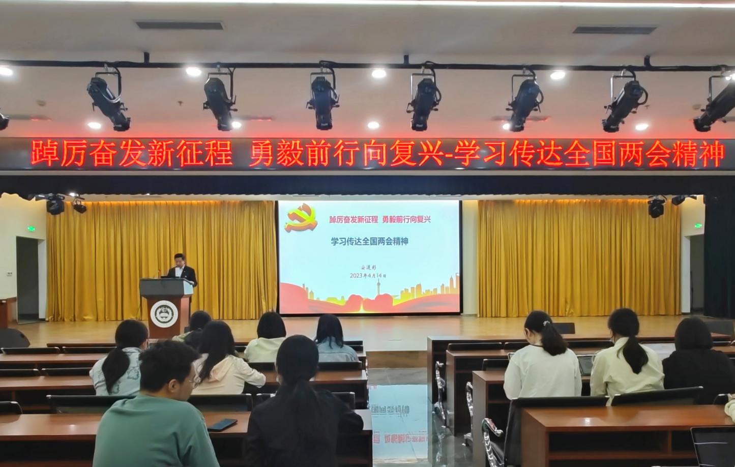 安道彩书记从习近平总书记全国“两会”期间四次重要讲话精神、政府工作报告的主要内容、十四届全国人大一次会议和全国政协十四届一次会议审议的主要内容等方面进行讲解,希望同学们进一步提高政治判断力、政治领悟力、政治执行力,牢牢把握高质量发展这一首要任务,深刻领会高质量发展的核心要义、丰富内涵和实践要求,完整、准确、全面贯彻新发展理念,听党话、跟党走,更加紧密地团结在以习近平同志为核心的党中央周围,为全面建设社会主义现代化国家、全面推进中华民族伟大复兴贡献青春力量。