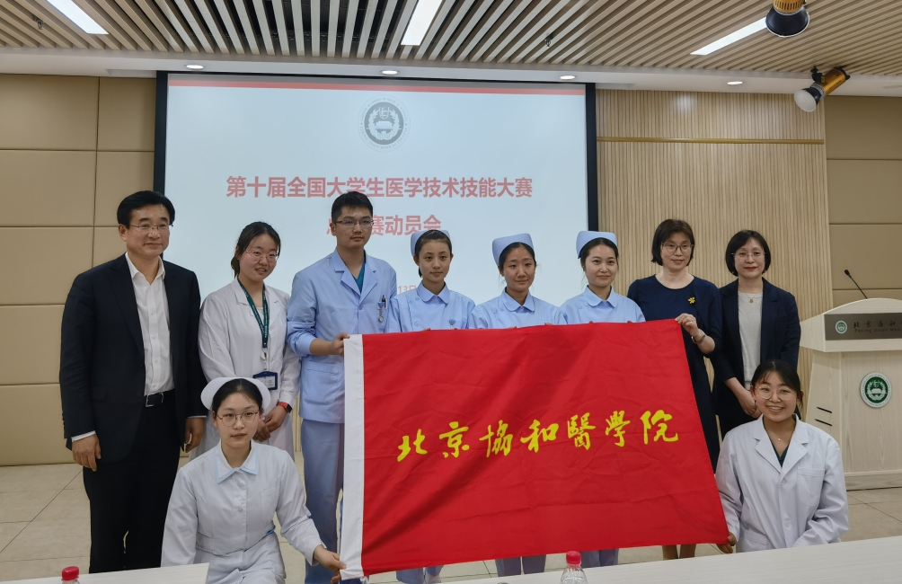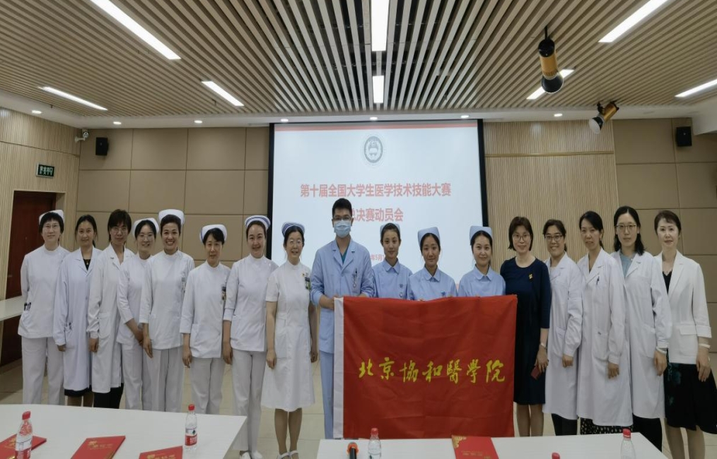 在出征总决赛前,王辰院校长和张勤副院校长亲自为出征队伍进行总动员,为指导教师颁发感谢状,为参赛队员颁发证书并授队旗。王辰院校长对指导教师的辛勤付出表示由衷感谢,对选手的积极备战给予充分肯定,希望参赛选手在大赛的舞台上放平心态,自信沉着,展现协和人的专业素养。