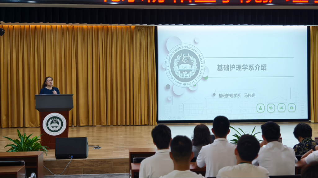 各办公室、学系负责人分别介绍本部门工作情况、业务管理、人才队伍建设、教学工作等,带领新生走进协和护理教育体系,领略护理学专业课程设置,为即将开启的学习生活打下基础。