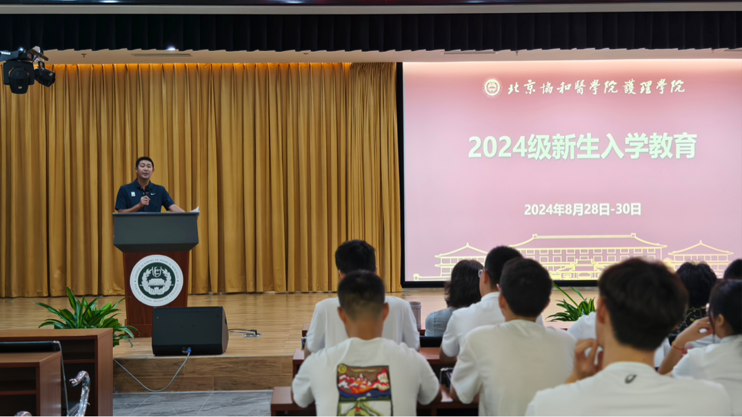 党委安道彩书记以《协和与护理文化》为主题介绍了百年来一代代协和人对“尊科学济人道”协和精神的践行与传承,帮助同学们了解协和护理的文化与历史,感悟南丁格尔精神在百年间的薪火相传。在感叹光阴荏苒、群星璀璨的同时,赋予新生协和人的责任与使命,播下“悲悯、专注、自省”的种子,作为协和人坚定为人类健康福祉不懈奋斗的初心使命。