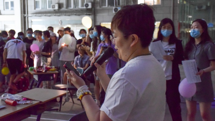 猜歌比赛结束后,文体部又特别推出了点歌环节,将现场气氛再一次推向新的高潮。“时光的河入海流,终于我们分头走……”研究生们唱响《凤凰花开的路口》,为即将毕业的师兄师姐送上美好祝愿;“从前从前,有个人爱你很久……”“我知道你才是这世界上无与伦比的美丽……”各路好友团为当天过生日的几位同学准备了惊喜,全场共同见证了青春时代最美好的友情与爱情。声浪阵阵,高潮迭起,跳动的音符接踵而至,青春的旋律如影随形。舞蹈社的同学们也纷纷在合唱中加入舞蹈,张扬别样风采,挥洒青春汗水。夏夜微风,挥舞的闪光灯仿佛点点星光,照亮每一张真诚笑颜。封校不封爱,此刻,便是星辰大海。