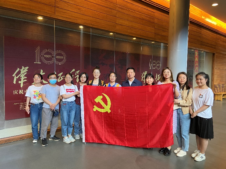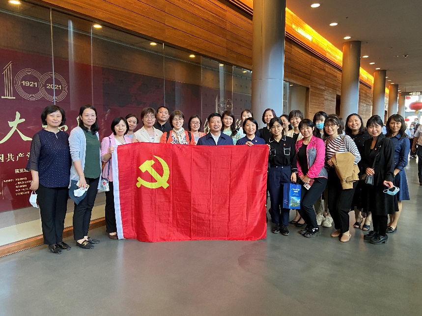 走进展厅,“十月革命一声炮响,给我们送来了马克思列宁主义”的耀眼大字,顿时扑入我们眼帘。循着具有标志意义的数字立柱前行,可清晰和全面地了解中国共产党在风雨飘摇的时代,走过了一段艰辛而漫长的路。大家按照建党的时间轴线依次参观了“东方破晓”、“星火燎原”、“中流砥柱”、“夺取胜利”四个主题单元。通过观看中共一大会址嘉兴南湖红船模型、《共产党序言》译本、八七会议记录和开国大典上的礼炮等实物模型和实物展品,阅读陈独秀、李大钊等革命先烈的主要事迹,回顾了中国共产党诞生到新中国成立的伟大历程,波澜壮阔的历史画卷在面前徐徐展开。部分同志结合最近观看的建党百年献礼电视剧—《觉醒年代》,不断交流心得体会,深化理解党史知识。