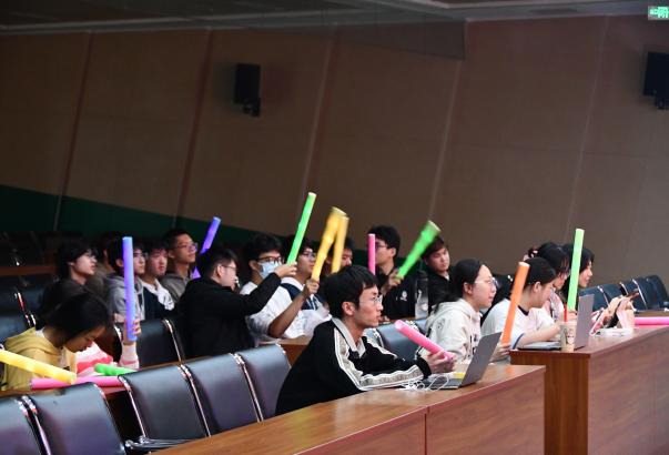 活动伊始,同学们自愿上台演唱,同学们重温经典歌曲,活跃现场氛围。随后,在“我爱记歌词”、“Emoji表情猜歌名”等趣味活动中,从回忆歌曲,再到上台演唱,每一位同学都在积极参与。台上同学一展歌喉,台下观众随着节奏挥舞手中的荧光棒,用心感受歌曲带来的力量,从歌曲中汲取前行动力,借歌声表达自己对祖国的热爱。