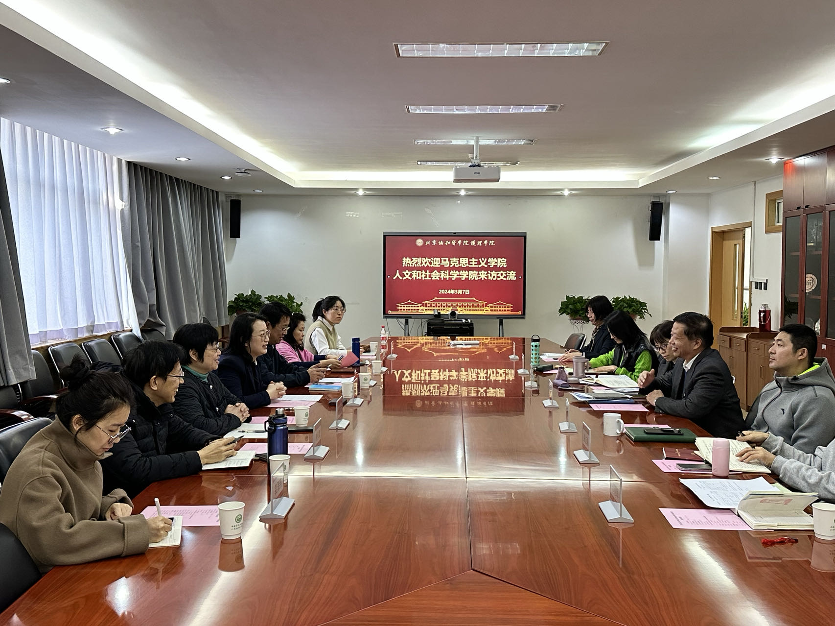 3月7日上午,马克思主义学院人文和社会科学学院(以下简称“马院人文学院”)常务副院长刘欢一行到八大处校区就思政、人文等课程建设与BB贝博艾弗森官方网站老师交流研讨。马院人文学院副院长李建、胡红濮,以及职能部门负责人和教师代表,BB贝博艾弗森官方网站副院长梁涛、王欢,以及教学科研办公室负责人参加会议。交流研讨会由BB贝博艾弗森官方网站党委书记安道彩书记主持。