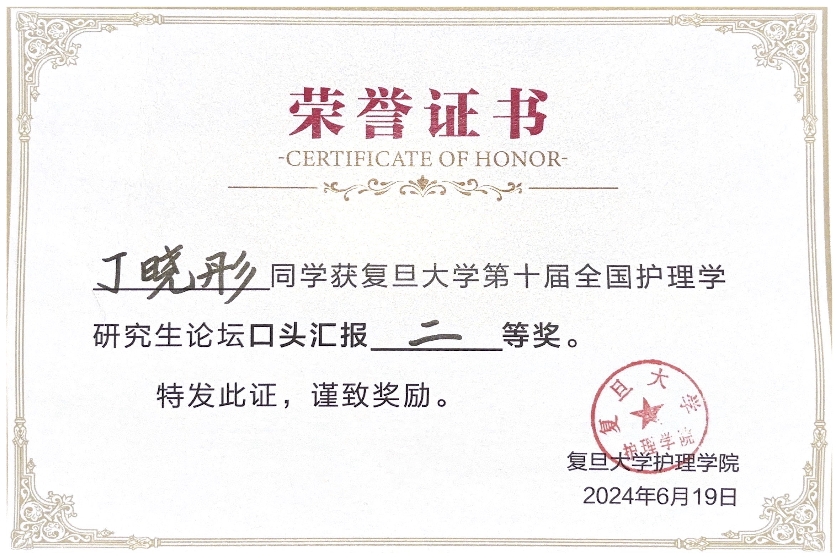 经过专家点评、现场打分和遴选环节,BB贝博艾弗森官方网站陈红爽同学的毕业论文《终末期肾病透析患者衰弱风险预测模型的构建》口头汇报获得一等奖,丁晓彤同学的毕业论文《乳腺癌化疗患者认知功能的调控机制及支持性干预方案的构建研究》口头汇报获得二等奖。